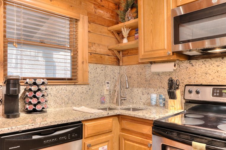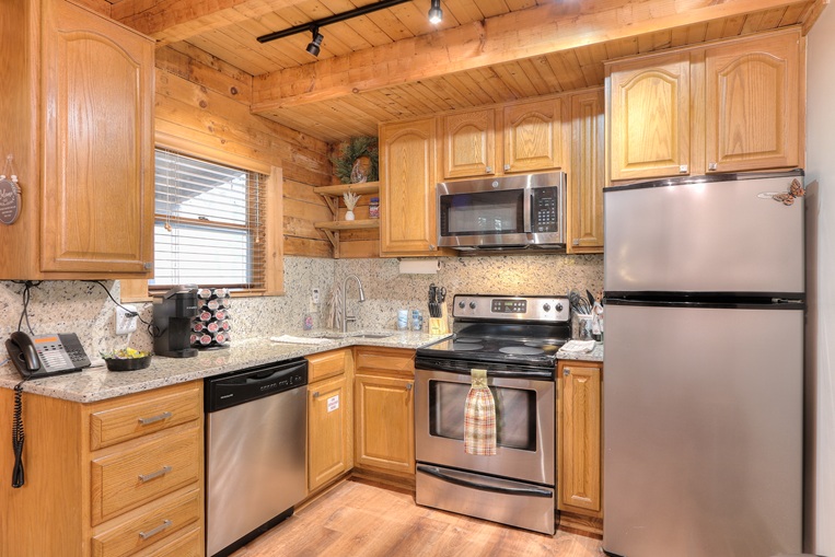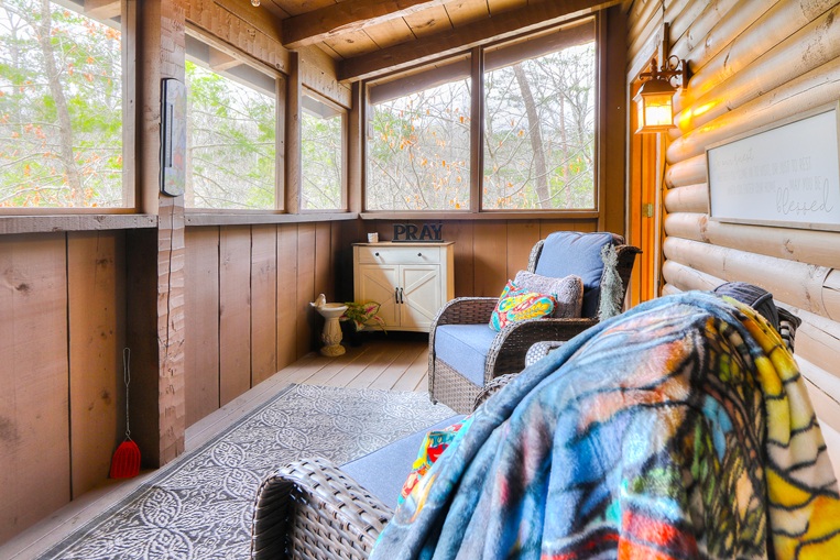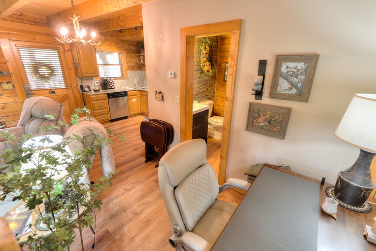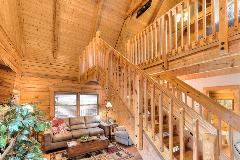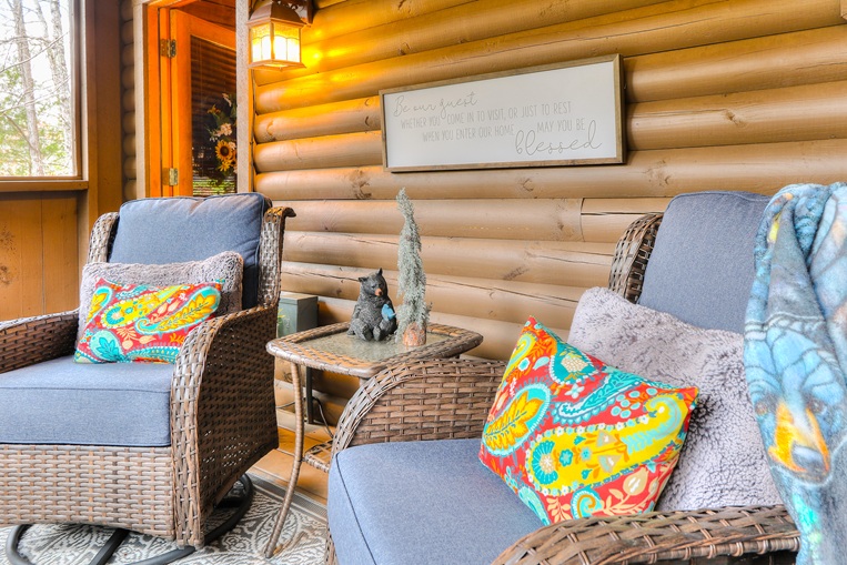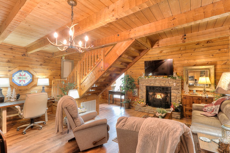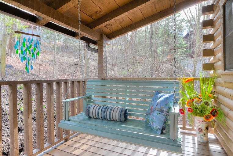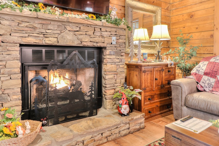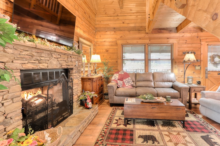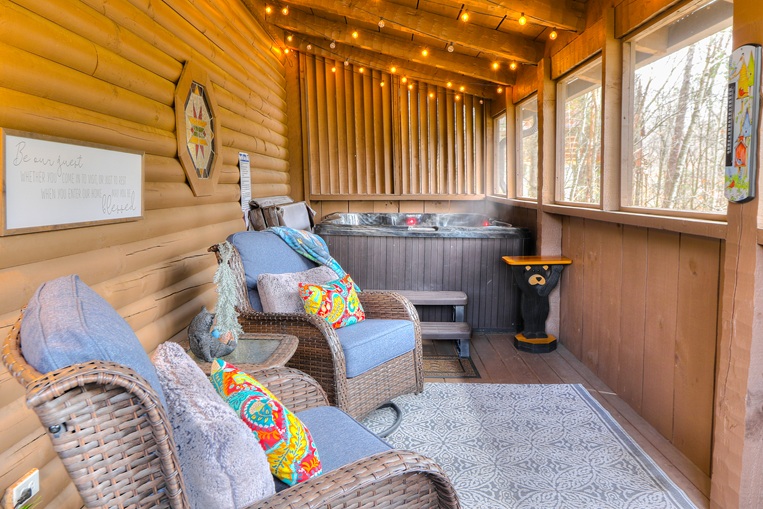 Bear’Foot Hollow, 4022, is nestled into a beautiful wooded setting. Although there are other cabins nearby, it evokes a feeling of seclusion. The private, screened back porch with its hot tub is a perfect place to wind down and enjoy the breeze after your busy day in the Smokies.