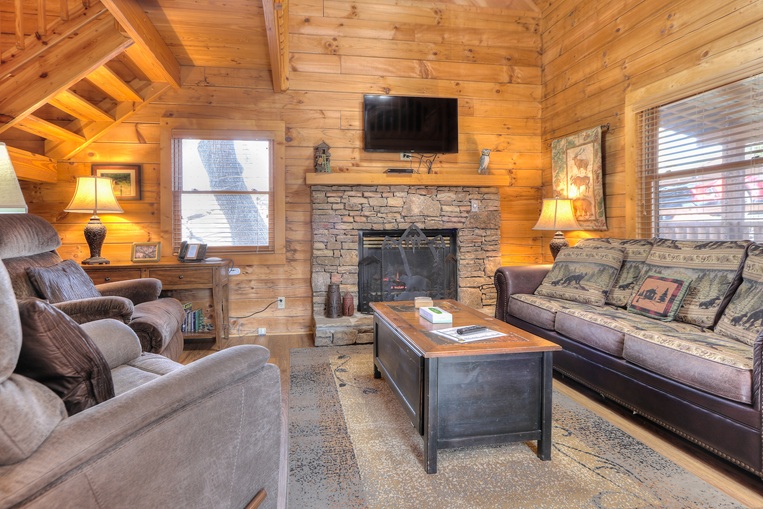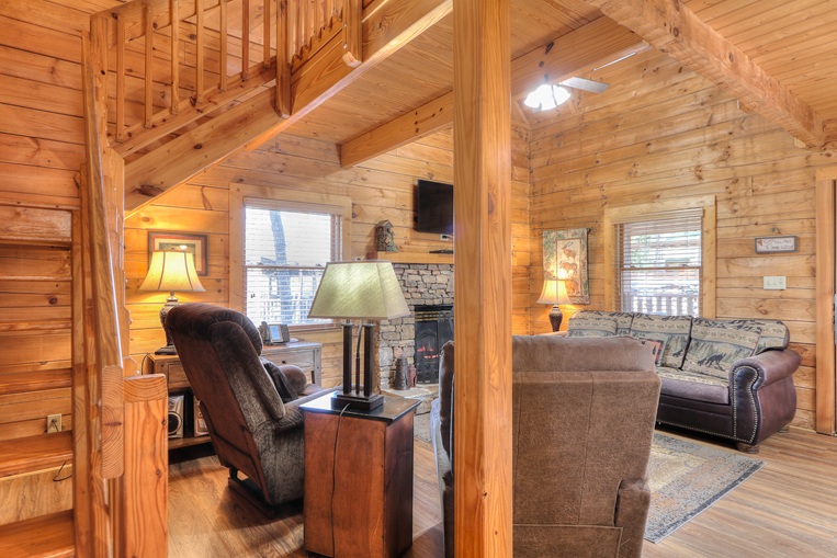 Wild Thing, cabin 4078, is a fun and romantic loft-style log cabin set against a forest in Hidden Mountain East. Wild Thing offers a main level full-bath with a standing shower and Smart TV’s throughout for you to log-in on your favorite streaming apps. Whether you’re looking for the perfect spot for your honeymoon or anniversary celebration or a cozy place to take the kids, look no further; Wild Thing has it all!