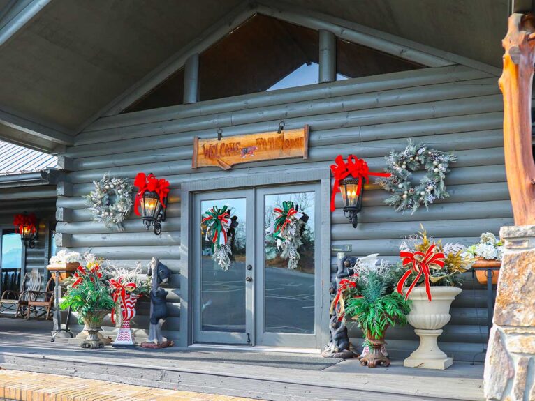 Bring everyone together to meet, eat and retreat at The Lodge at Hidden Mountain. Available for daily rental, the Lodge can host from 120+ people with its elegant copper-topped tables and plush yet rustic seating area. To make hosting your event a breeze, it is even equipped with a grand piano, a full catering kitchen, complete with a walk-in refrigerator, grill & ice maker, as well as a built-in audio/visual system with wireless microphone, overhead speakers, and 2 built-in flat TVs on either side of the massive stone & log fireplace. Large screened porches allow extra space for your guests to rock & chat while the kids enjoy the pools below.
